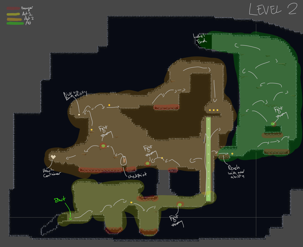 Level Design: Designing the levels by first doing block-outs on paper and in Figma, and creating the levels in Unity using Tile Sets.