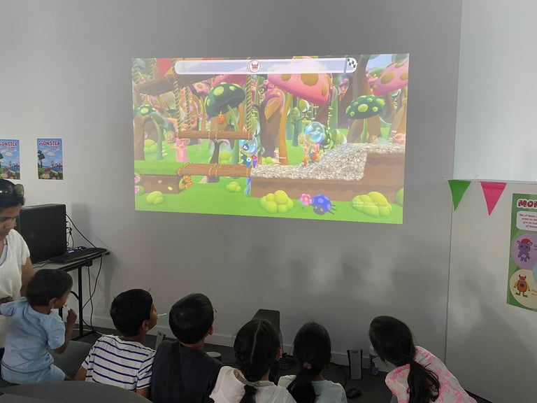 Playtesting: We ran multiple playtest sessions throughout different stages of development. Some were done within the team, others with other students from our course, and 2 with the children who created the monsters at their school. I organized the sessions with the other designer, but took care of the communication. This was my favorite part of the project, as I got to see the kids try the game and see them having fun playing the game that we had created for them.