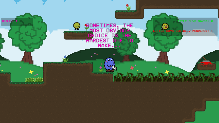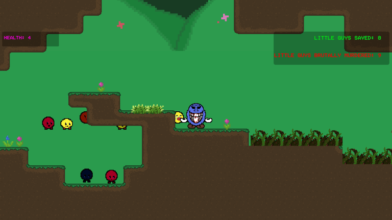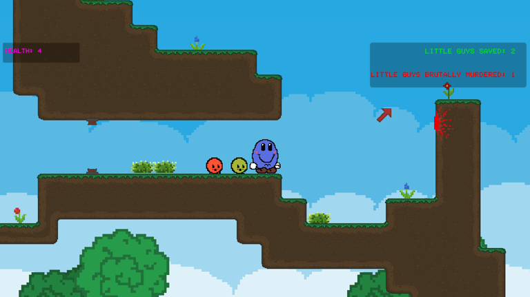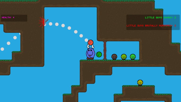 The theme of the GameJam was "Can't save them all", so we decided to make a game where you have to save little guys, but to save more little guys, you have to sacrifice some by throwing them to switch levers or to use as steps to reach otherwise non-reachable areas.